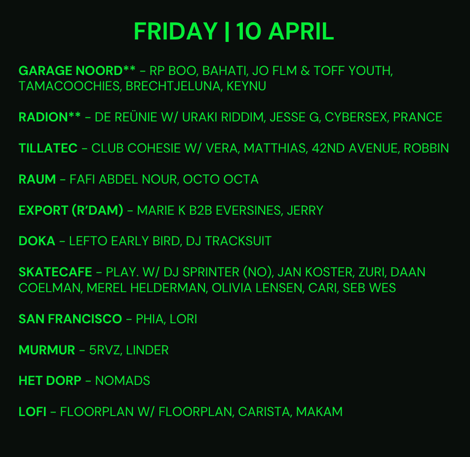 Each week this newsletter will bring you a curated selection of the best parties happening in and around Amsterdam, along with insider tips, new club openings, and other fun stuff I come across. Hopefully this NachtKalender will help you guide your way through the weekend.